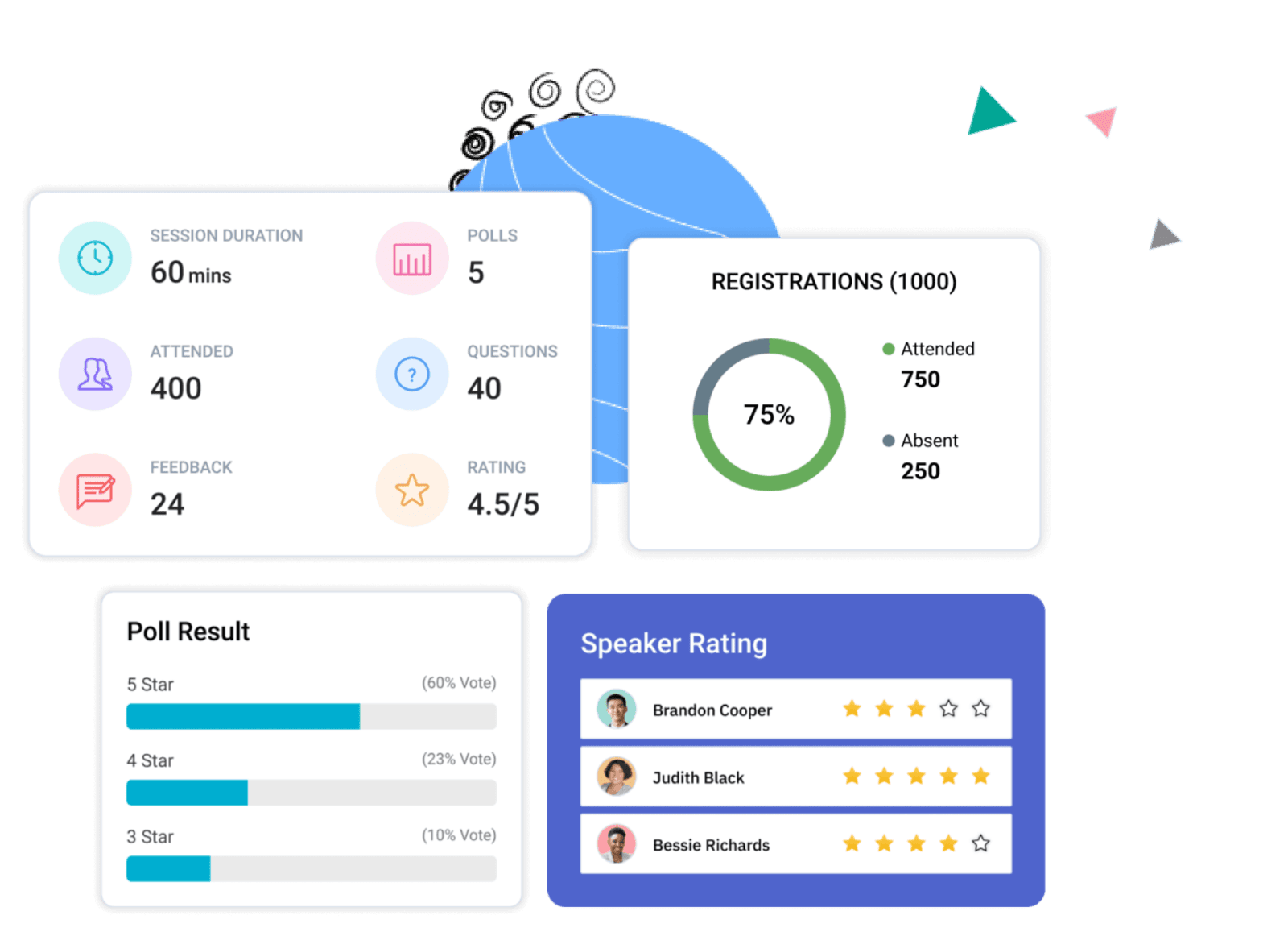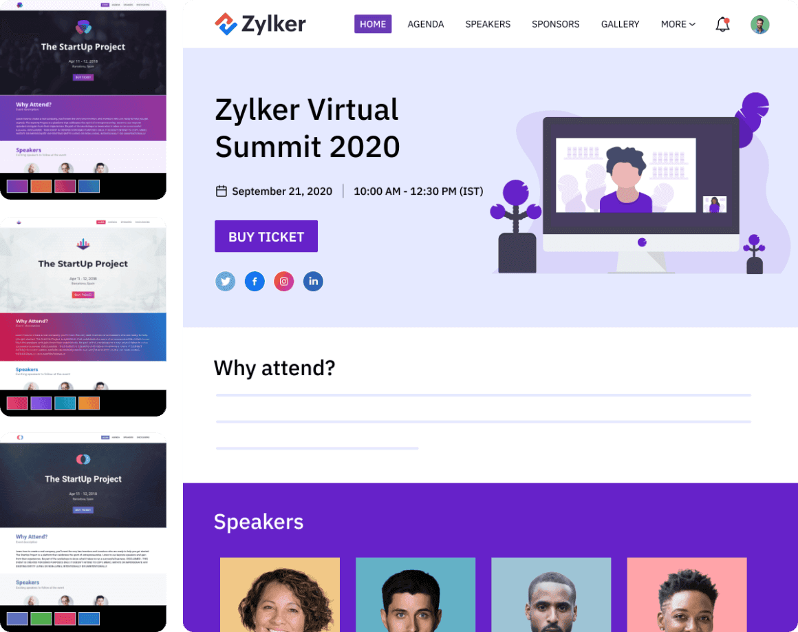 All that you need to host a full-fledged online event, minus the hassle. With the Zoom integration in Zoho Backstage, you can offer the best experience to your attendees.