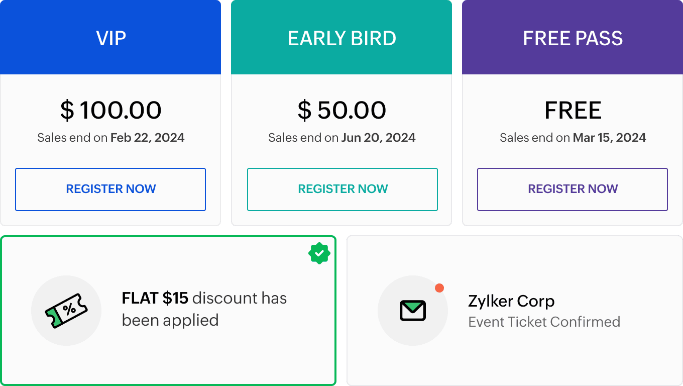 Simplify ticket sales with pre-set activation and expiry dates. Boost event ticket sales with a list of auto-generated promo codes.