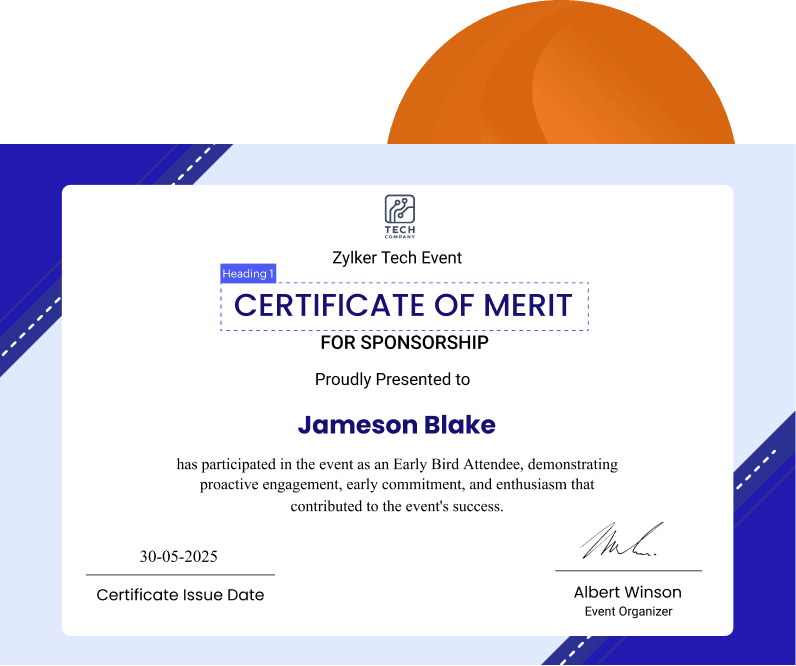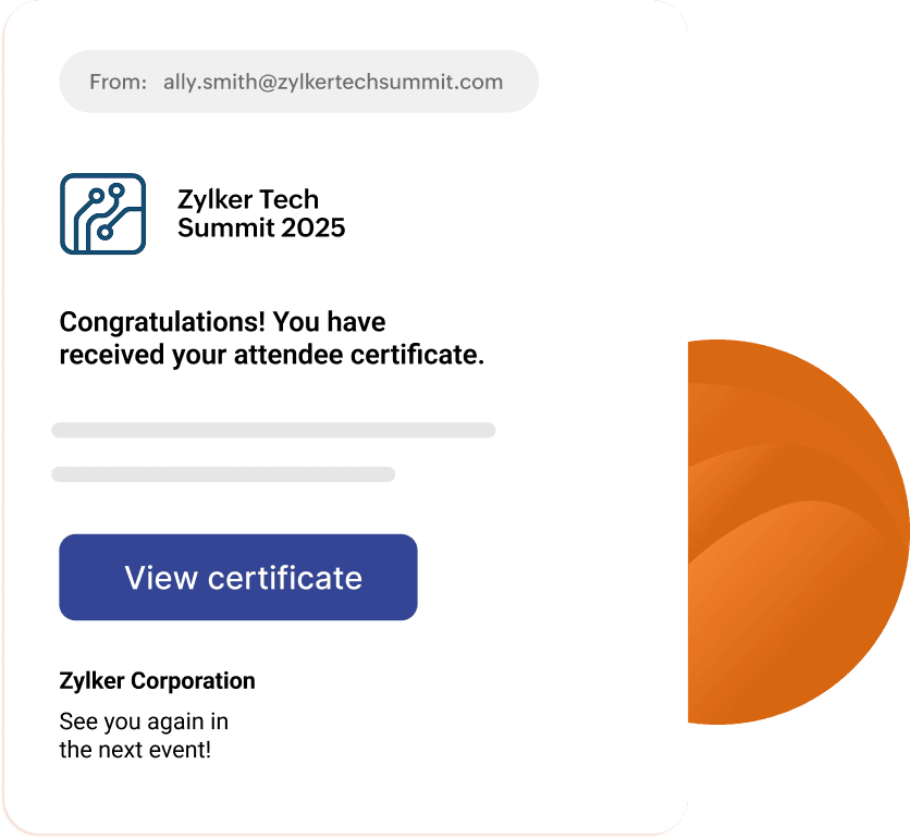 Whether it's for attendees or speakers, create polished certificates without the manual work. Use ready-made templates or design from scratch with a drag-and-drop editor. Create unique certificates for attendees, speakers, or specific ticket types.