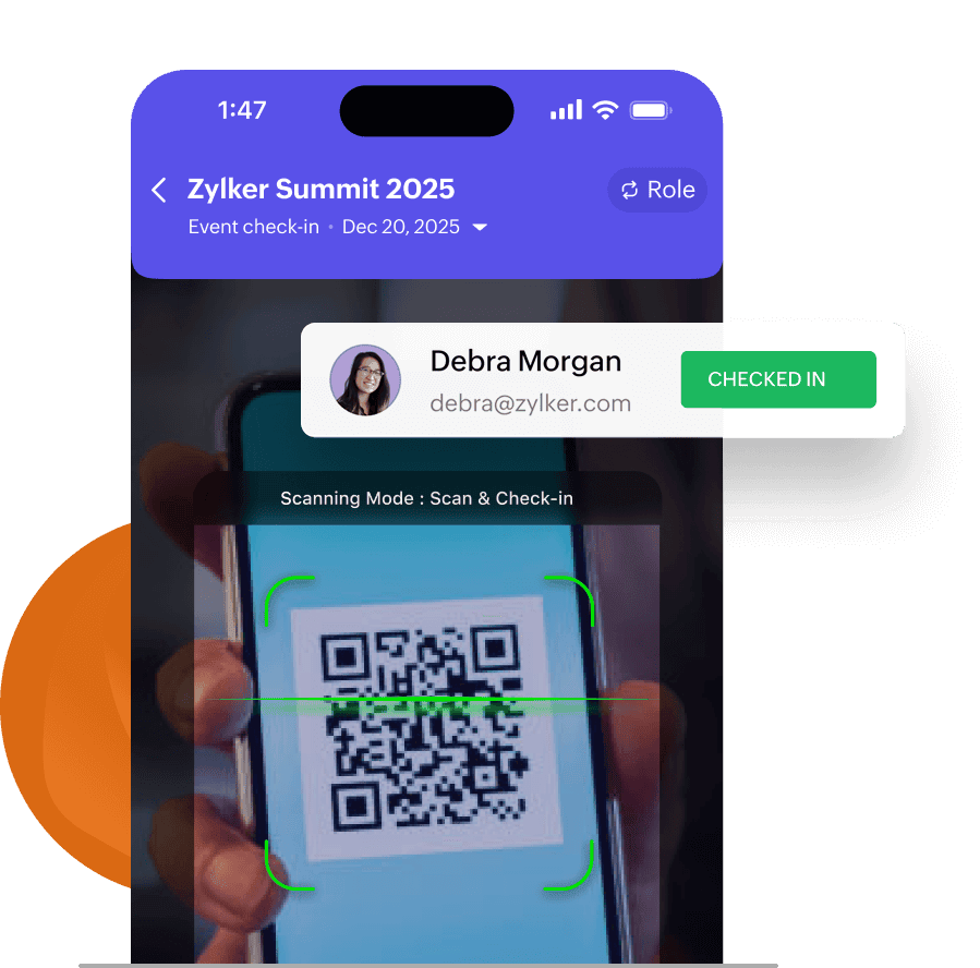 No more searching through lists with slow manual check-ins. Attendees can simply scan their QR codes at the entrance and step right in, making the process fast and efficient with event check-in app.