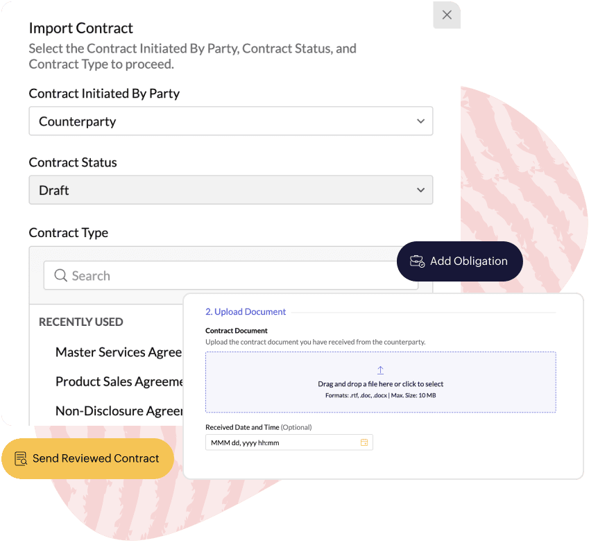 Now, seamlessly import and manage counterparty-initiated contracts directly in Zoho Contracts. Start by marking the "Contract Initiated By" field as "Counterparty" during import. The workflow instantly picks up from the negotiation stage.