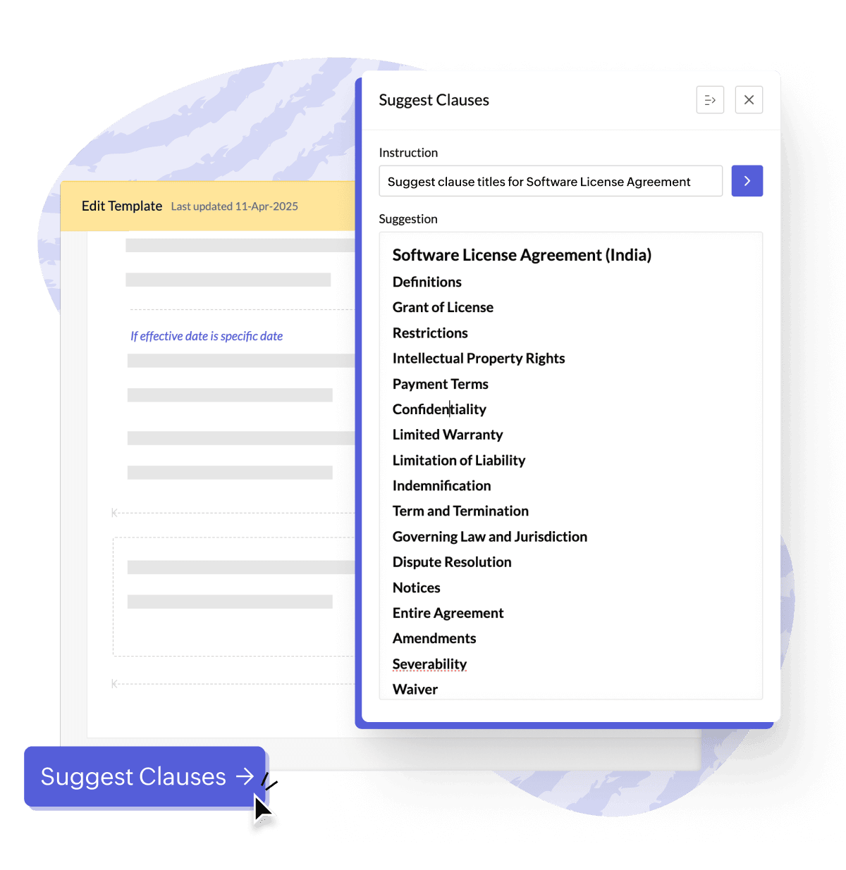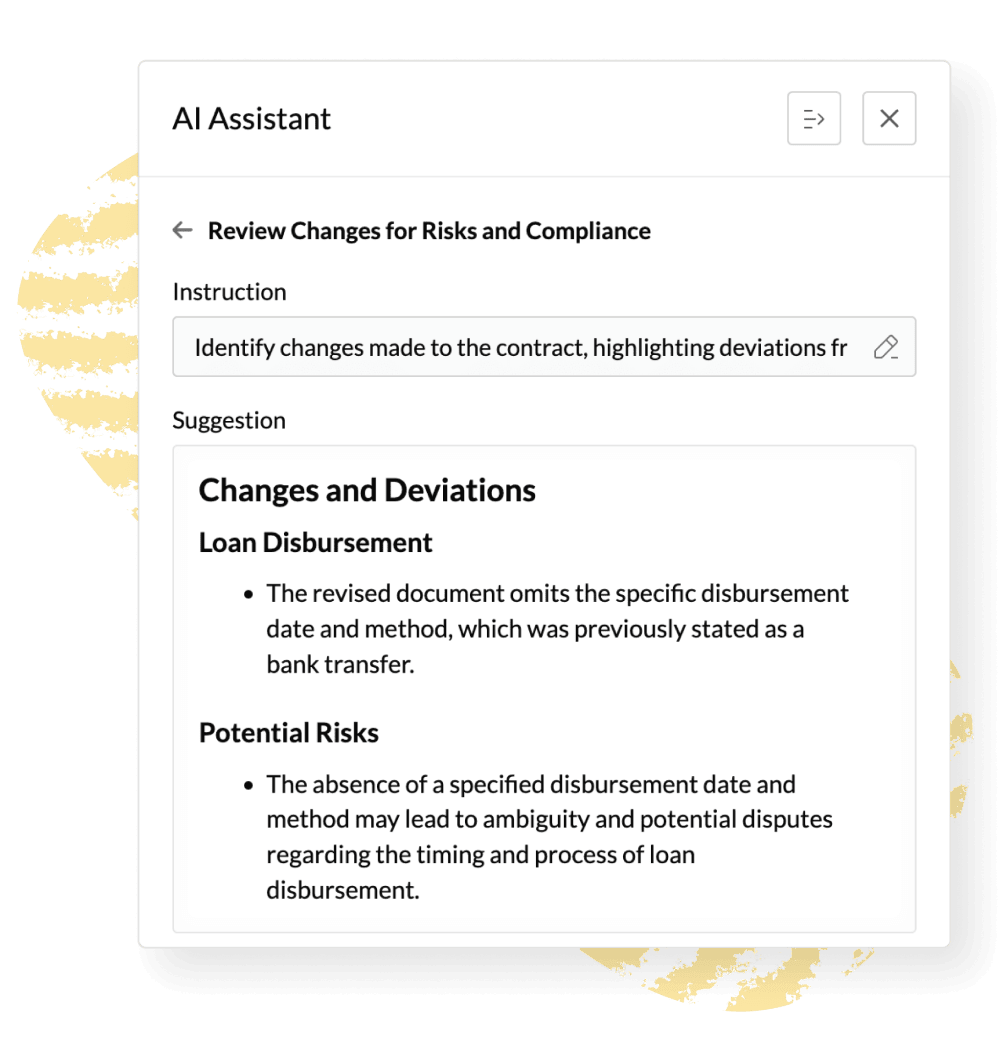 Draft contracts quickly with predefined and customizable templates and a comprehensive clause library with pre-approved languages.