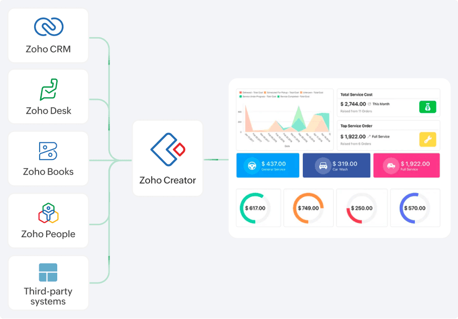 Supercharge your existing systems, whether it's a Zoho application or a third party application, to create apps tailored to your unique use-cases.