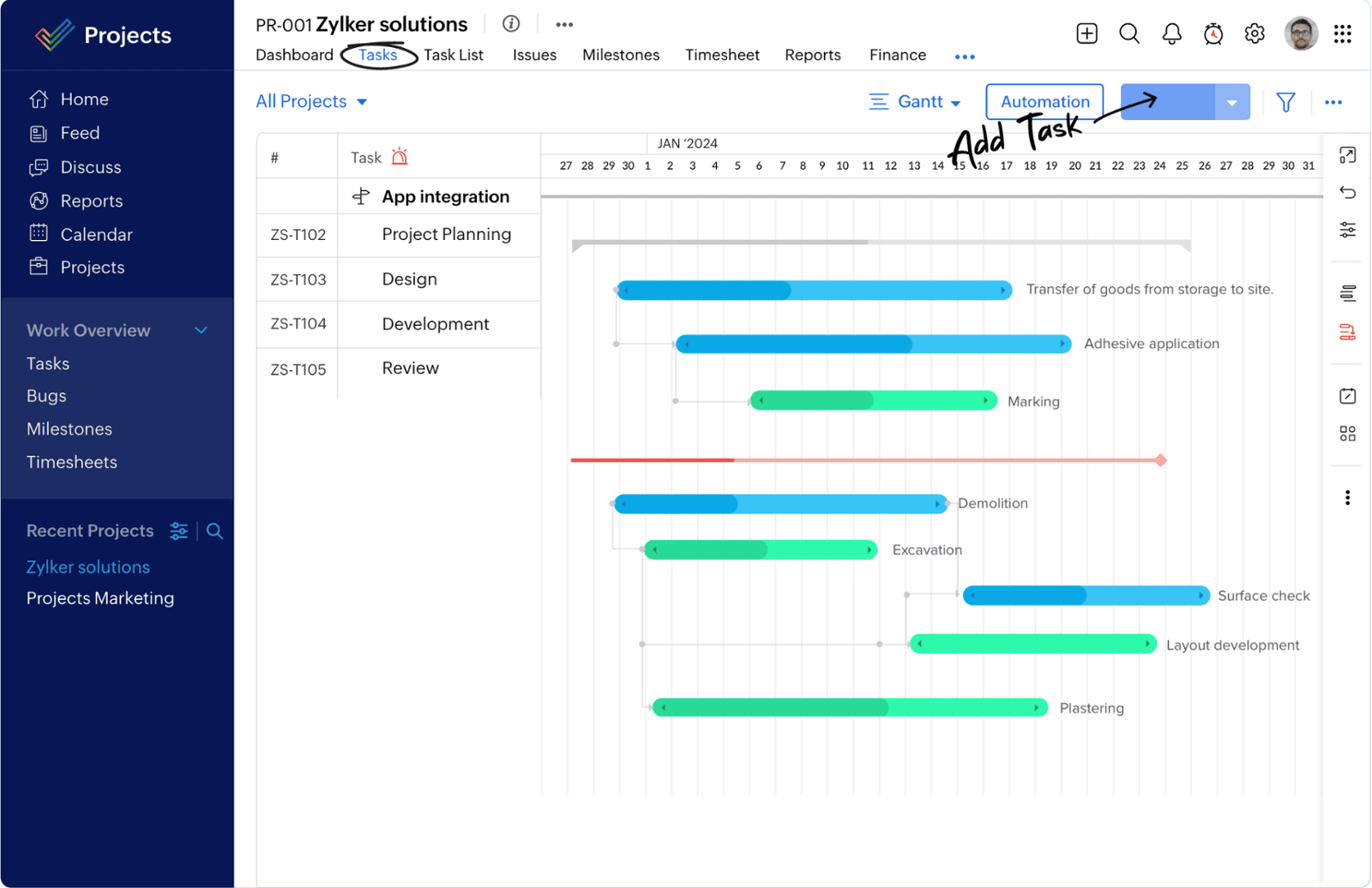 Zoho Projects gives you the added advantage of several other Zoho apps and third party apps through seamless integrations.